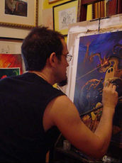 O estúdio é o coração pulsante da criação — o espaço onde ideias ganham forma, cores encontram seu rumo e cada traço se transforma em expressão. Entre pincéis, tintas, cadernos e telas, nasce o universo visual do artista: um lugar de silêncio concentrado e, ao mesmo tempo, de explosões de imaginação. É aqui que as pinturas e desenhos surgem, onde experimentações acontecem e onde cada obra inicia sua própria jornada.