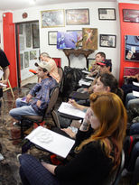 Recebemos mais de 20 alunos e todos com muyita vontade em aprender a técnica de pintura em acrílica que desenvolvo há muitos anos.